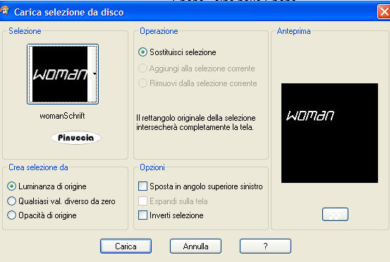 Selezione>Carica/salva selezione>Carica selezione da disco.