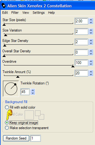 4. Effetti>Plugins>Alien Skin - Xenofex 2 - Constallation, con i seguenti settaggi.