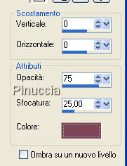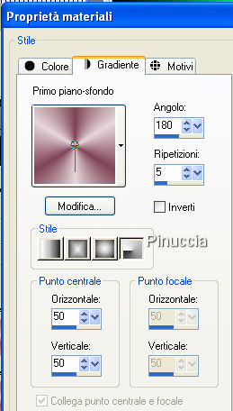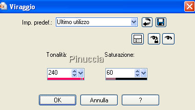 qui puoi trovare qualche risposta ai tuoi dubbi. Se l'argomento che ti interessa non è presente, ti prego di segnalarmelo. Questo tutorial è stato creato con PSP X, ma può essere eseguito anche con le altre versioni di PSP. Un ringraziamento ai creatori del bel materiale che ho ricevuto attraverso varie mailing lists. Per favore, non cambiare il nome dei files e non cancellare il livello del watermark. Occorrente: Materiale qui Filtri: Flaming Pear - Flexify2 qui 1. Apri una nuova immagine trasparente 700 x 500 pixels. Apri il tube della rosa "1566 rose AR...". Posizionati sul livello del tube e vai a Modifica>Copia. Torna al tuo lavoro e vai a Modifica>Incolla come nuovo livello. Regola>Tonalità e Saturazione>Viraggio, con i seguenti settaggi: ![]() 2. Scegli dal tube un colore chiaro come colore di primo piano (io ho usato #e6d6d9), e un colore scuro come colore di sfondo (io ho usato #7f4456). Crea un Gradiente di primo piano/sfondo, con i seguenti settaggi: ![]() e riempi il livello di sfondo (Raster 1) con questo gradiente.Rimani posizionato sul livello di sfondo. 3. Effetti>Effetti di distorsione>Tasselli: ![]() Effetti>Effetti di riflesso>Specchio rotante: ![]() Effetti>Effetti di bordo>Aumenta. 4. Attiva il livello del tube. Livelli>Duplica, e chiudi il livello della copia. Posizionati sul livello originale del tube. Effetti>Plugins>Flaming Peer>Flexify 2, con i settaggi standard. ![]() 5. Effetti>Effetti di distorsione>Coordinate polari. ![]() Prova entrambi i settaggi, e scegli quello che preferisci. Il risultato può essere molto differente, a seconda del tube che usi. A seconda del tube che stai usando e del risultato che puoi ottenere, puoi anche riflettere (Immagine>Rifletti) o ingrandire (immagine>ridimensiona) il livello. 6. Attiva e rendi visibile il livello superiore. Effetti>Effetti 3D>Sfalsa ombra, con i seguenti settaggi: ![]() 7. Immagine>Aggiungi bordatura, 2 pixels, simmetriche, con il colore scuro. Immagine>Aggiungi bordatura, 25 pixels, simmetriche, con il colore chiaro. Seleziona questo bordo con la bacchetta magica ![]() ![]() e riempilo con il gradiente.Selezione>Inverti. Effetti>Effetti 3D>Ritaglio, con i seguenti settaggi, con il colore scuro. ![]() Selezione>Deseleziona. 8. Apri il tube chrismist_quote_love_2.pspimage, e vai a Modifica>Copia. Torna al tuo lavoro e vai a Modifica>Incolla come nuovo livello. Posiziona il tube dove preferisci.Se il colore nero del testo non si adatta all'immagine, vai a Immagine>Immagine negativa, e avrai il testo con il colore bianco. Aggiungi il tuo nome e/o il tuo watermark e salva in formato jpg. Il tube di questo esempio è di Jet. ![]() ![]() Se hai problemi o dubbi, o trovi un link non funzionante, scrivimi 25 Febbraio 2008 |