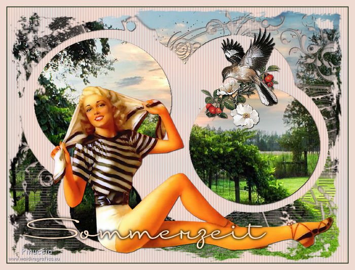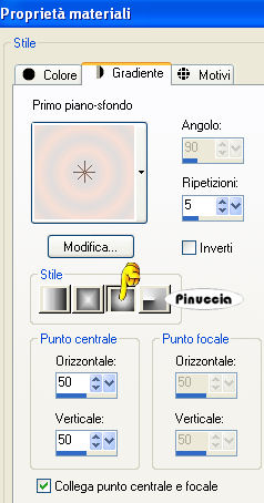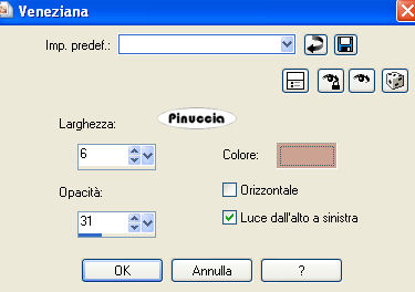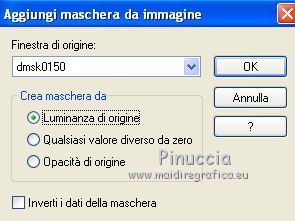 qui puoi trovare qualche risposta ai tuoi dubbi. Se l'argomento che ti interessa non è presente, ti prego di segnalarmelo. Questo tutorial è stato creato con PSP X2, ma può essere eseguito anche con le altre versioni di PSP. Un ringraziamento ai creatori del bel materiale che ho ricevuto attraverso varie mailing lists. Per favore, non cambiare il nome dei files e non cancellare il livello del watermark. Occorrente: Materiale qui Apri tutto il materiale in PSP, comprese le maschere sax_blend e dmsk0150. 1. Apri una nuova immagine trasparente 800 x 600 pixels. Imposta il colore di primo piano con #f7dfd5, e il colore di sfondo con #e0dddd. Passa il colore di primo piano a Gradiente di primo piano/sfondo, con i seguenti settaggi: ![]() Riempi l'immagine trasparente con il gradiente.Regola>Sfocatura>Sfocatura gaussiana - raggio 20. ![]() 2. Effetti>Effetti di trama>Veneziana, colore #cca292: ![]() Regola>Messa a fuoco>Metti a fuoco, 2 volte. 3. Livelli>Nuovo livello raster. Selezione>Seleziona tutto. Apri l'immagine Nature_01146.jpg e vai a Modifica>Copia. Torna al tuo lavoro e vai a Modifica>Incolla nella selezione. Selezione>Deseleziona. 4. Livelli>Nuovo livello maschera>Da immagine. Apri il menu sotto la finestra di origine e seleziona la maschera sax_blend.jpg. ![]() Livelli>Unisci>Unisci gruppo. Effetti>Effetti 3D>Sfalsa ombra: ![]() Livelli>Nuovo livello maschera>Da immagine. Seleziona la maschera dmsk0150.jpg: ![]() Livelli>Unisci>Unisci gruppo. 5. Apri il tube della donna e vai a Modifica>Copia. Torna al tuo lavoro e vai a Modifica>Incolla come nuovo livello. Immagine>Ridimensiona, all'85%, tutti i livelli non selezionato. Effetti>Effetti 3D>Sfalsa ombra, con i settaggi precedenti. Posiziona il tube in basso.Apri il tube Saphiere Bird 47 e vai a Modifica>Copia. Torna al tuo lavoro e vai a Modifica>Incolla come nuovo livello. Immagine>Ridimensiona, al 40%, tutti i livelli non selezionato. Posiziona il tube come nel mio esempio.Apri il file di testo e vai a Modifica>Copia. Torna al tuo lavoro e vai a Modifica>Incolla come nuovo livello. se preferisci, puoi scrivere un altro testo a tua scelta 6. Immagine>Aggiungi bordatura, 2 pixels, simmetriche, con il colore scuro. Immagine>Aggiungi bordatura, 15 pixels, simmetriche, con il colore chiaro. Aggiungi il tuo nome e/o il tuo watermark e salva in formato jpg. ![]() ![]() Se hai problemi o dubbi, o trovi un link non funzionante, scrivimi. 1 Agosto 2008 |