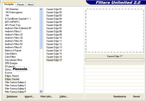 qui puoi trovare qualche risposta ai tuoi dubbi. Se l'argomento che ti interessa non è presente, ti prego di segnalarmelo. Materiale qui Metti la maschera nella cartella Maschere di PsP. Filtri: Filters Unlimited qui Jeux de Lignes qui Transparency qui Per tradurre il tutorial ho usato PSP X, ma può essere eseguito anche con le altre versioni di PSP. Imposta il colore di primo piano con #d67e31. Imposta il colore di sfondo con #4c312a. 1. Apri il tube bikinibums-sdh. Questa sarà la tua area di lavoro. Elimina il livello Raster 1. 2. Livelli>Nuovo livello raster. Riempi con il colore di sfondo.per riempire con il colore di sfondo, devi cliccare con il tasto destro del mouse Livelli>Disponi>Sposta giù. Effetti>Plugins>Filters Unlimited - Render - Clouds (fore-back/ground color): ![]() Effetti>Plugins>Jeux de lignes - Entrelacement: ![]() 3. Attiva nella paletta dei livelli il livello del tube. Effetti>Effetti 3D>Sfalsa ombra: ![]() Ripeti l'Effetto Sfalsa ombra, ma cambiando verticale e orizzontale a -5. Livelli>Unisci>Unisci tutto. Immagine>Ridimensiona, all'85%, tutti i livelli selezionato. Regola>Messa a fuoco>Metti a fuoco. 4. Immagine>Aggiungi bordatura, 1 pixel, simmetriche, con il colore di sfondo. Immagine>Aggiungi bordatura, 10 pixels, simmetriche, con il colore bianco. Minimizza l'immagine, per il momento. 5. Apri una nuova immagine trasparente 750 x 550 pixels, e riempila con il colore di sfondo.Livelli>Nuovo livello raster. Riempi con il colore di primo piano.6. Livelli>Carica/Salva maschera>Carica maschera da disco. Cerca e carica la maschera hjr_sigma. ![]() Livelli>Elimina e rispondi sì alla finestra Unire la maschera nel livello corrente?. ![]() Livelli>Unisci>Unisci gruppo. 7. Apri il tube Susan T3352. Regola>Saturazione e tonalità>Viraggio: ![]() Modifica>Copia. Torna all'immagine sulla quale stai lavorando (750x550) e vai a Modifica>Incolla come nuovo livello. 8. Immagine>Ruota per gradi: ![]() Sposta il tube nell'angolo in alto a sinistra.![]() 9. Effetti>Plugins>Transparency - Eliminate White: 10. Attiva il primo lavoro che hai minimizzato al punto 4 e vai a Modifica>Copia. Torna al secondo lavoro con la cartolina e vai a Modifica>Incolla come nuovo livello. 11. Effetti>Effetti 3D>Sfalsa ombra: ![]() Ripeti l'Effetto Sfalsa ombra, ma cambiando verticale e orizzontale a -5. Nella paletta dei livelli attiva il livello con la cartolina (Raster 2). 12. Apri il tube Nadine. Immagine>Rifletti. Modifica>Copia. Torna al tuo lavoro e vai a Modifica>Incolla come nuovo livello. Attiva lo strumento Puntatore ![]() Deformazione se stai usando PSP 9e "tira" il tube in modo che le palme siano visibili. 13. Livelli>Unisci>Unisci tutto. 14. Apri il tube Scrap 532 e vai a Modifica>Copia. Torna al tuo lavoro e vai a Modifica>Incolla come nuovo livello. Sposta il tube a sinistra.15. Apri lo scrap Nietje e vai a Modifica>Copia. Torna al tuo lavoro e vai a Modifica>Incolla come nuovo livello. Spostalo a destra.Livelli>Duplica, 2 volte e posiziona le copie una sotto l'altra. 16. Apri il tube hjr_hearts e vai a Modifica>Copia. Torna al tuo lavoro e vai a Modifica>Incolla come nuovo livello. Sposta il tube a sinistra.17. Apri il tube Summer Greetings-Vika e vai a Modifica>Copia. Torna al tuo lavoro e vai a Modifica>Incolla come nuovo livello. Spostalo in basso a destra.18. Livelli>Unisci>Unisci tutto. 19. Immagine>Aggiungi bordatura, 1 pixel, simmetriche, con il colore bianco. Immagine>Aggiungi bordatura, 25 pixels, simmetriche, con il colore di sfondo. Seleziona il bordo con la bacchetta magica ![]() Livelli>Nuovo livello raster. Riempi con il bianco.Effetti>Plugins>Filters Unlimited - Edges Square - Square Edge 17. ![]() Regola>Messa a fuoco>Metti a fuoco. Regola>Messa a fuoco>Accentua messa a fuoco. Selezione>Nessuna selezione. 20. Livelli>Unisci>Unisci tutto. 21. Aggiungi il tuo nome e salva in formato jpg. ![]() ![]() Se hai problemi o dubbi, o trovi un link non funzionante, o anche soltanto per un saluto, scrivimi 17 Giugno 2007 |