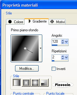 Passa il colore di sfondo a Gradiente di primo piano/sfondo, con i seguenti settaggi: