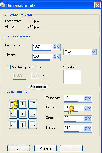 14. Immagine>Dimensione tela, con i seguenti settaggi:
