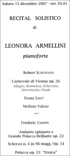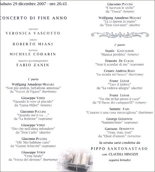 L'Associazione ha organizzato, per le feste natalizie, una serie di cinque appuntamenti - due concerti, un musical e due rappresentazioni di prosa- che si articoleranno tra dicembre 2007 e gennaio 2008.