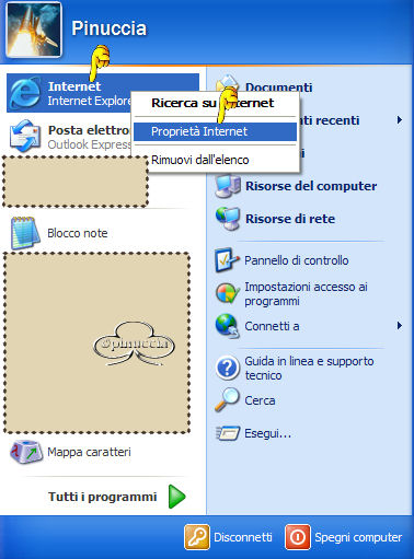 Clicca con il tasto destro del mouse sull'icona di Internet,