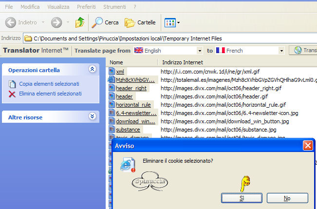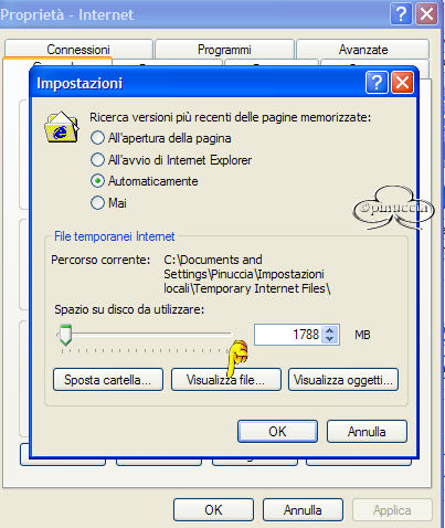 Come vedi ci sono sia i Temporanei di Internet (nel mio esempio vedi pochi byte, perchè li ho appena cancellati, per poter illustrare queste note)