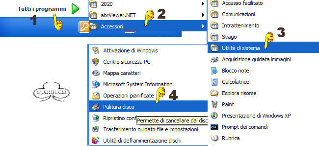 Tutti i programmi>Accessori>Utilità di sistema>Pulitura disco: