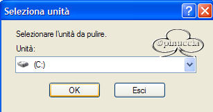 Alla successiva finestra, clicca ok se vuoi selezionare il disco principale, che solitamente ha la lettera C. Se vuoi selezionare altri settori del tuo computer, apri il menu cliccando sulla freccetta del box e scegli il disco che intendi pulire.