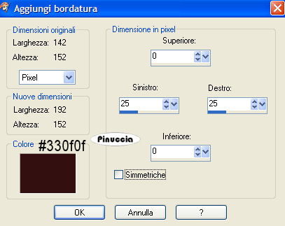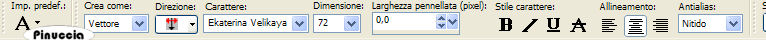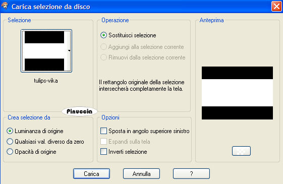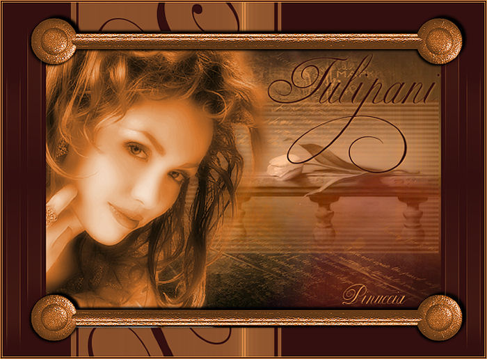 qui puoi trovare qualche risposta ai tuoi dubbi. Se l'argomento che ti interessa non è presente, ti prego di segnalarmelo. Occorrente: Materiale qui Diversi tubes, immagine di sfondo, maschera, pennelli, selezione, font Ekatarina Velikaya Two. Metti il materiale nelle rispettive cartelle. Apri il font e minimizzalo nella tua area di lavoro. Lo troverai nella lista dei font disponibili, quando ti servirà. Alcuni tubes non si aprono in PSP 9. Eccoli convertiti per chi usa questa versione qui Filtri: VM Extravaganza-Transmission qui L en K landsiteofwonders-Maxim qui Imposta il colore di primo piano con #e7964a. Imposta il colore di sfondo con #732410. 1. Apri il file di sfondo gh_texture_12. Immagine>Ridimensiona, all'85%. Questa sarà la tua area di lavoro. 2. Livelli>Nuovo livello raster. Riempi il nuovo livello con il colore di primo piano.3. Livelli>Carica/Salva maschera>Carica maschera da disco. Cerca e carica la maschera SaraLettersMask. ![]() Livelli>Elimina, e rispondi sì alla domanda Unire la maschera nel livello corrente? ![]() Livelli>Unisci>Unisci gruppo. 4. Livelli>Nuovo livello raster. Selezione>Carica/Salva selezione>Carica selezione da disco. Cerca e carica la selezione tulips-Vika: ![]() Passa il colore di primo piano a Gradiente di primo piano/sfondo con i seguenti settaggi: ![]() Riempi la selezione con questo gradiente.Effetti>Plugins>VM Extravaganza - Transmission: ![]() Nella paletta dei livelli abbassa l'opacità di questo livello al 30%. 5. Selezione>Nessuna selezione. 6. Apri il tube della donna 1731 dwtubes. Immagine>Ridimensiona, all'85%. Modifica>Copia. Torna al tuo lavoro e vai a Modifica>Incolla>Incolla come nuovo livello. Sposta il tube a sinistra.Regola>Saturazione e tonalità>Viraggio: ![]() 7. Apri il tube Misted_tulips_Scenic. Attiva nella paletta dei livelli il livello del tube e vai a Modifica>Copia. Torna al tuo lavoro e vai a Modifica>Incolla>Incolla come nuovo livello. Spostalo a destra, vedi il mio esempio.Nella paletta dei livelli cambia la modalità di miscelatura di questo livello in Luminanza (esistente). Livelli>Disponi>Sposta giù. 8. Livelli>Unisci>Unisci tutto. 9. Immagine>Aggiungi bordatura, 50 pixels, simmetriche, con un colore qualsiasi, purchè non presente nell'immagine. Seleziona il bordo con la bacchetta magica ![]() Imposta il colore di sfondo con #330f0f (questo cambierà la tonalità del gradiente) Livelli>Nuovo livello raster. Riempi il bordo con il gradiente.Effetti>Plugins>L & K - Maxime: ![]() Mantieni selezionato. 10. Attiva lo strumento Pennello ![]() cerca e seleziona il pennello awbpspbrushset 023 001. Applica il pennello sul bordo cliccando con il tasto destro del mouse per usare il colore di sfondo. (vedi sopra il mio esempio). 11. Selezione>Nessuna selezione. 12. Apri il tube freebie-scrap-rustymetalelements. Nella paletta dei livelli attiva il livello obj-15 e vai a Modifica>Copia. Torna al tuo lavoro e vai a Modifica>Incolla>Incolla come nuovo livello. Immagine>Ridimensiona, al 50%, tutti i livelli non selezionato. Sposta il tube in alto (vedi il mio esempio).Livelli>Duplica. Immagine>Capovolgi. Livelli>Unisci>Unisci giù. Regola>Saturazione e tonalità>Viraggio, con i settaggi precedenti: ![]() Regola>Messa a fuoco>Metti a fuoco. 13. Effetti>Effetti 3D>Sfalsa ombra: ![]() Ripeti Effetti>Effetti 3D>Sfalsa ombra, con i seguenti settaggi: ![]() 14. Livelli>Unisci>Unisci tutto. 15. Immagine>Aggiungi bordatura, simmetriche non selezionato: ![]() 16. Attiva lo strumento Pennello ,cerca e seleziona il pennello geometric 10, e applicalo lungo i bordi con il colore di primo piano, vedi il mio esempio. Con lo strumento Gomma , cancella le parti del pennello visibili sul tube.17. Attiva lo strumento Testo , font Ekatarina twoo:![]() e scrivi Tulipani o quello che preferisci. dovrai regolare il settaggio della dimensione a seconda del testo e anche della versione di PSP che stai usando: trovi alcuni appunti sull'argomento in fondo a questa pagina Livelli>Converti in livello raster. Effetti>Effetti 3D>Sfalsa ombra, con i seguenti settaggi, con il colore di primo piano: ![]() 18. Immagine>Aggiungi bordatura, 1 pixel, simmetriche, con il colore di primo piano. Immagine>Aggiungi bordatura, 2 pixels, simmetriche, con il colore di sfondo. Immagine>Aggiungi bordatura, 1 pixel, simmetriche, con il colore di primo piano. 19. Aggiungi il tuo nome e salva in formato jpg. ![]() Se hai problemi o dubbi, o trovi un link non funzionante, o anche soltanto per un saluto, scrivimi 2 Maggio 2007 |