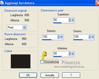 Immagine>Aggiungi bordatura, simmetriche non selezionato, colore di sfondo.