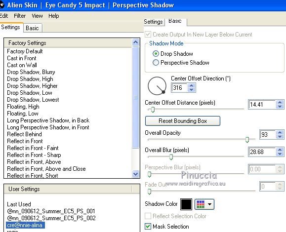 Metti il preset cre@annie-alina nella cartella del filtro Alien Skin Eye Candy 5 Impact>Setting>Shadow.