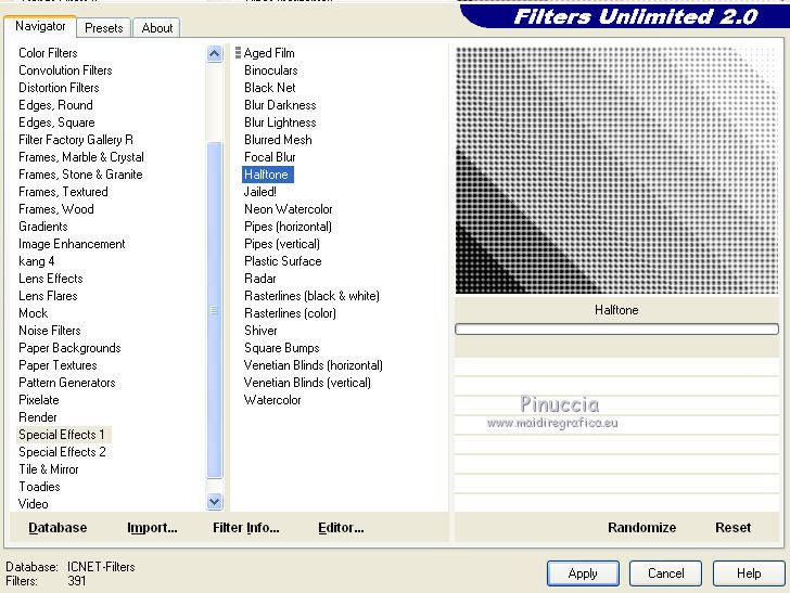Effetti>Plugins>Filters Unlimited 2.0 - Special Effects 1 - Halftone.