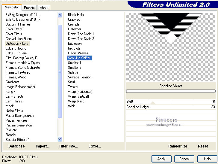 10. Effetti>Plugins>Filters Unlimited 2.0 - Distortion filters - Scanline shifter.