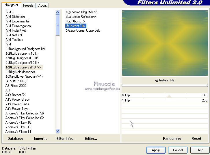 4. Effetti>Plugins>Filters Unlimited 2.0 - &<Bkg Designers sf10IV> - @Instant Tile.