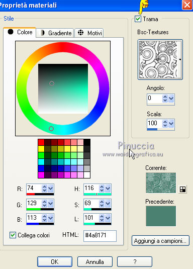 Cerca e seleziona la trama Bsc-Textures, con i seguenti settaggi.