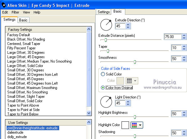 Seleziona il preset cre@nnie-therightattitude-extrude e ok.