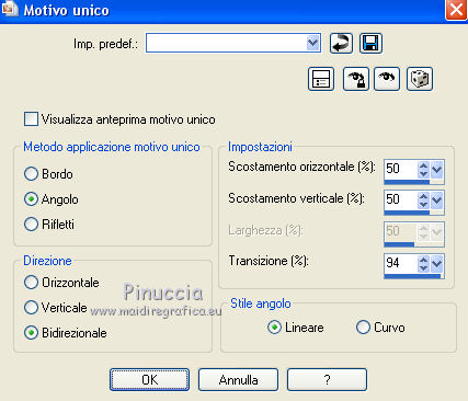 5. Effetti>Effetti di immagine>Motivo unico, con i settaggi standard.