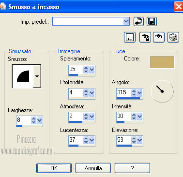 30. Effetti>Effetti 3D>Smusso a incasso, con il colore di primo piano.