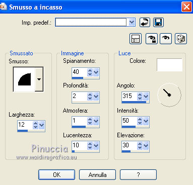 Effetti>Effetti 3D>Smusso a incasso, con i settaggi precedenti.