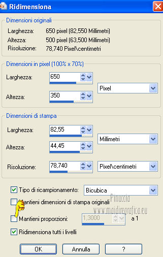 22. Immagine>Ridimensiona, a 650 x 350 pixels, tutti i livelli selezionato,