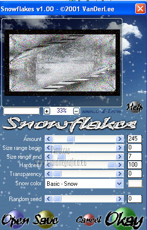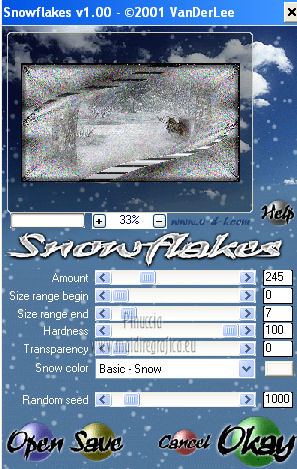 Effetti>Plugins>VDL Adrenaline - Snowflakes - imposta Random Seed con 2000 e ok.