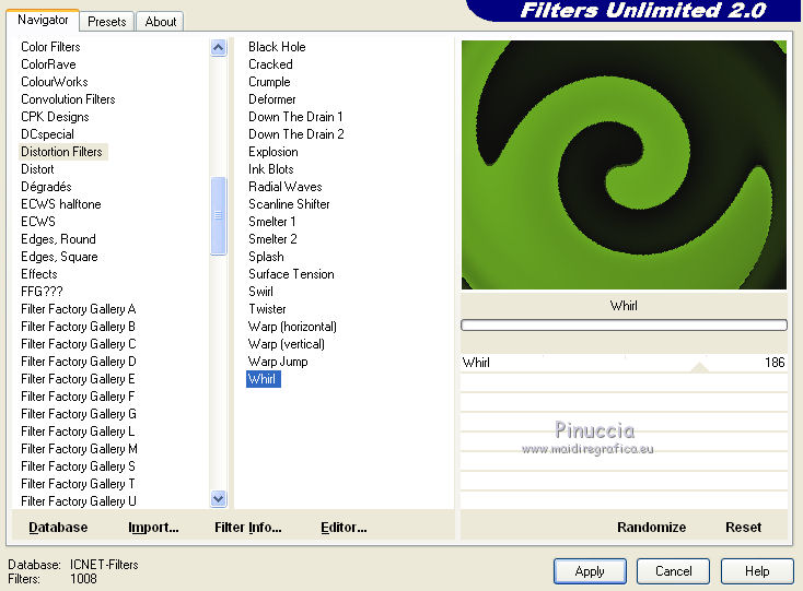 3. Effetti>Plugins>Filters Unlimited 2.0 - Distortion Filters - Whirl.