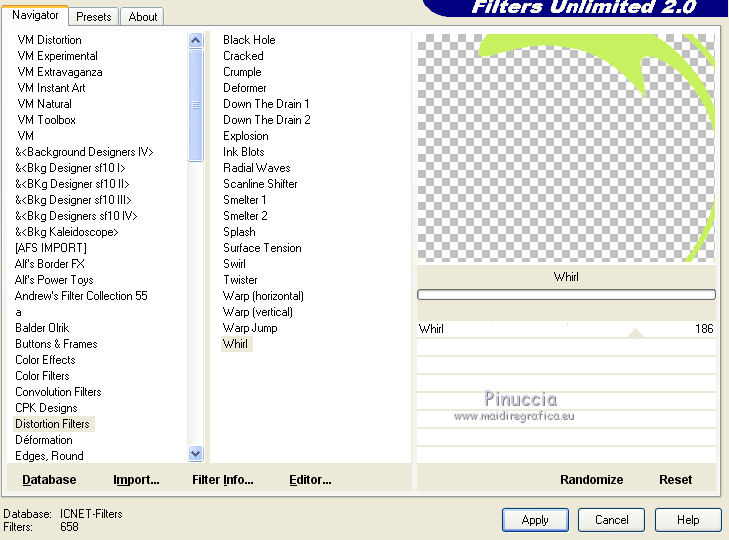 31. Effetti>Plugins>Filters Unlimited 2.0 - Distortion Filters - Whirl - 186.