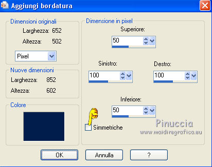 Immagine>Aggiungi bordatura, simmetriche non selezionato, colore di sfondo.