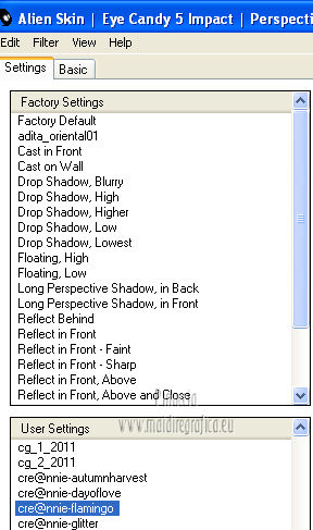 Metti il preset cre@nnie-flamingo nella cartella del filtro Alien Skin Eye Candy 5 Impact>Settings>Shadow.