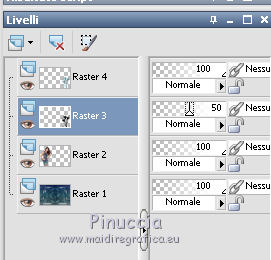 Abbassa l'opacità del livello sottostante (raster 3) al 50%.
