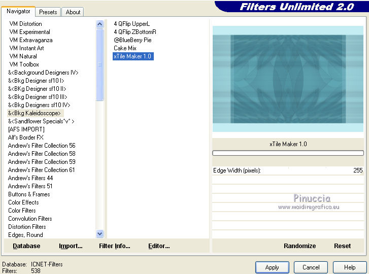 14. Effetti>Plugins>Filters Unlimited 2.0 - &<Bkg Kaleidoscope> - xTile Maker 1.0.