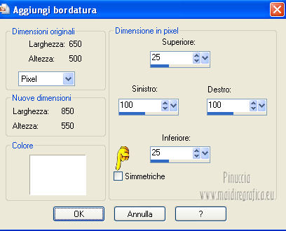 Immagine>Aggiungi bordatura, simmetriche non selezionato, con il colore bianco.