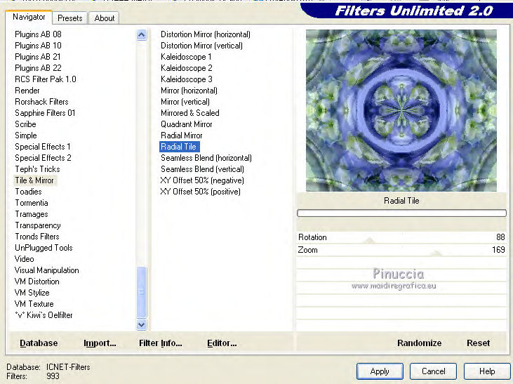 24. Effetti>Plugins>Filters Unlimited - Tile & Mirror - Radial Tile, con i settaggi standard