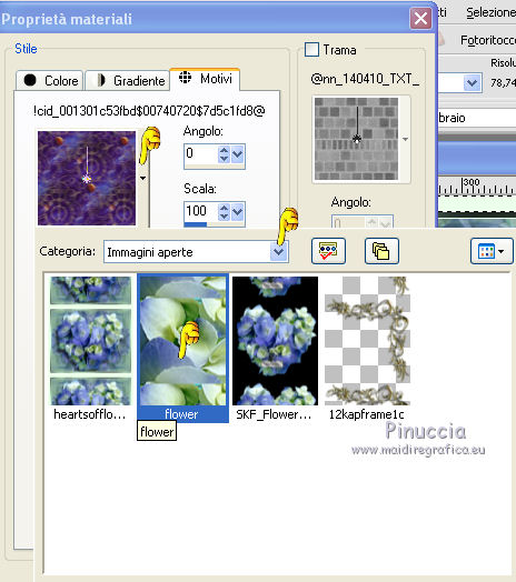 Passa il colore di sfondo a Motivi e cerca l'immagine tra "Immagini aperte".