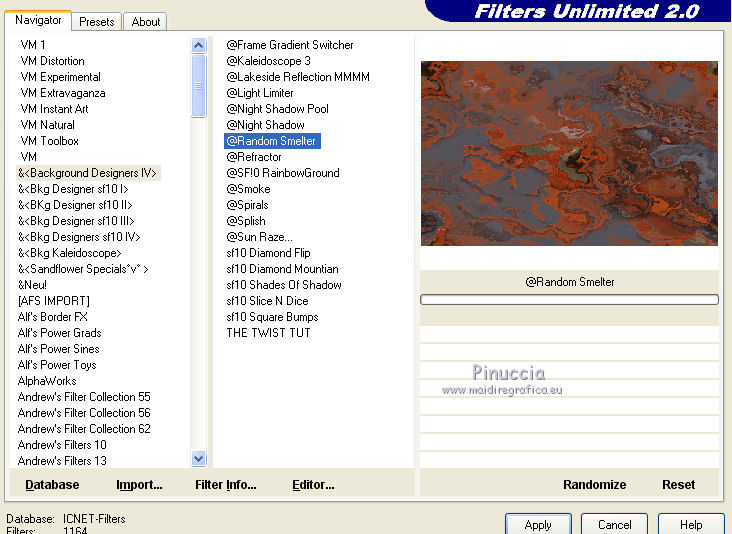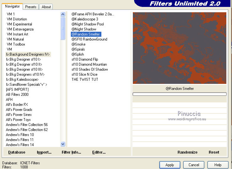 6. Effetti>Plugins>Filters Unlimited 2.0 - &<Bkg Designers IV> - @Random Smelter.