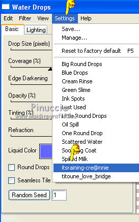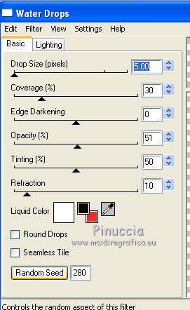 Effetti>Plugins>Eye Candy 4000 - Water Drops, clicca su Random Seed e ok.