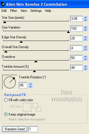 Effetti>Plugins>Alien Skin Xenofex 2.0 - Constellation, clicca su Random Seed e ok.