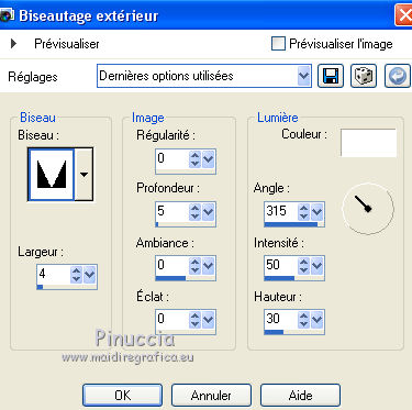 14. Effets>Effets 3D>Biseautage extérieur, comme précédemment.
