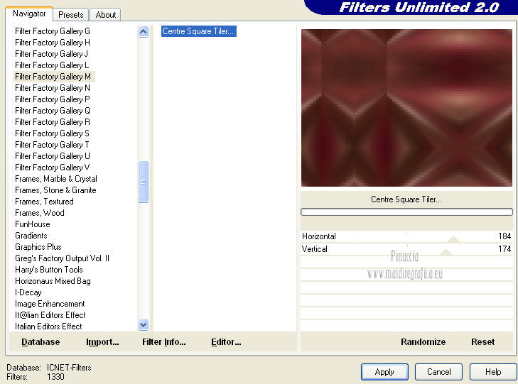 11. Effetti>Plugins>Filters Unlimited 2.0 - Filter Factory Gallery M - Centre square tiler.