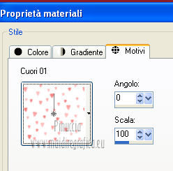 e seleziona il motivo Corel_08_020 o Cuori01, con i seguenti settaggi.