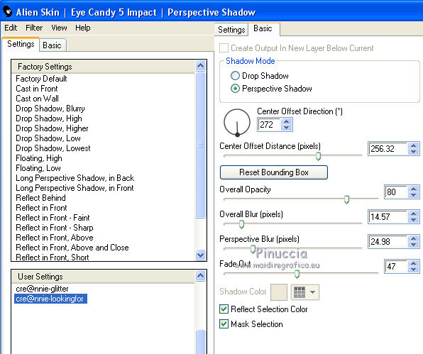 Metti il preset cre@nnie-lookingfor nella cartella del filtro Alien Skin Eye Candy 5 Impact>Settings>Shadow.