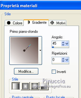 Passa il colore di primo piano a Gradiente, stile Lineare, con i seguenti settaggi.