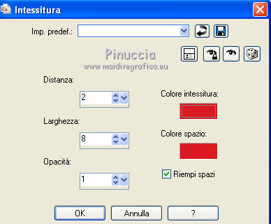 14. Effetti>Effetti di trama>Intessitura, entrambi i colori impostati con il colore di sfondo.