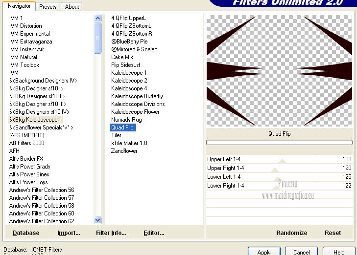 8. Effetti>Plugins>Filters Unlimited 2.0 - &<Bkg Kaleidoscope> - Quad Flip