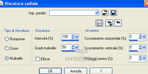 Regola>Sfocatura>Sfocatura radiale, con i settaggi precedenti.