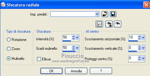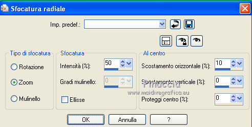 Regola>Sfocatura>Sfocatura radiale, con i settaggi precedenti.