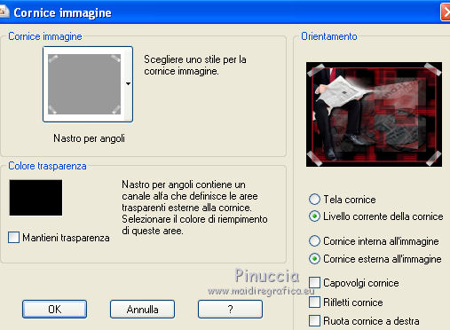 46. Immagine>Cornice immagine - seleziona la cornice Nastro per angoli, con i seguenti settaggi.