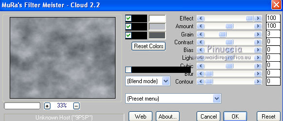 3. Effetti>Plugins>Mura's Meister - Cloud, con i settaggi standard.