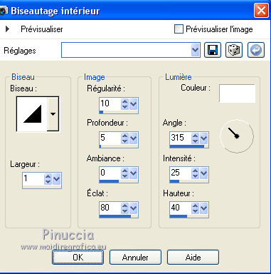 12. Effets>Effets 3D>Biseautage intérieur, comme précédemment.