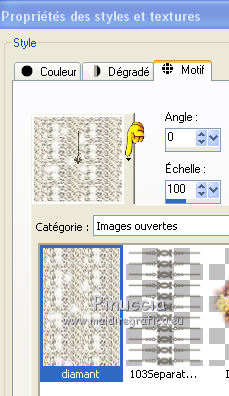 Placer en avant plan Motif et sélectionner le motif "diamant" avec ces réglages